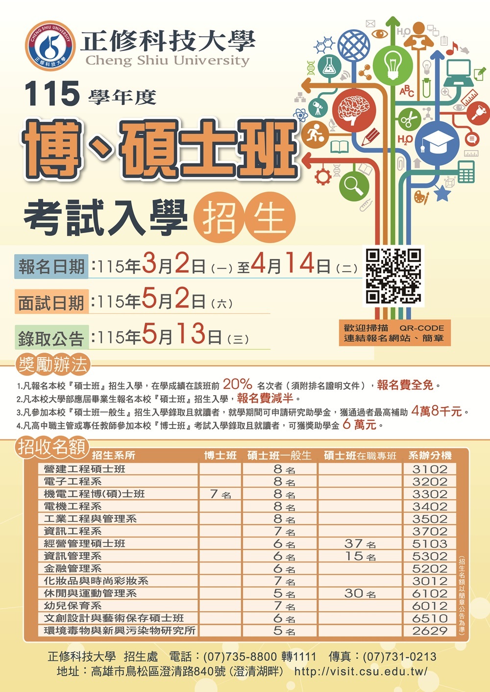 書審成績40% + 面試成績60%、本校獨招、免筆試、本校網站登錄報名